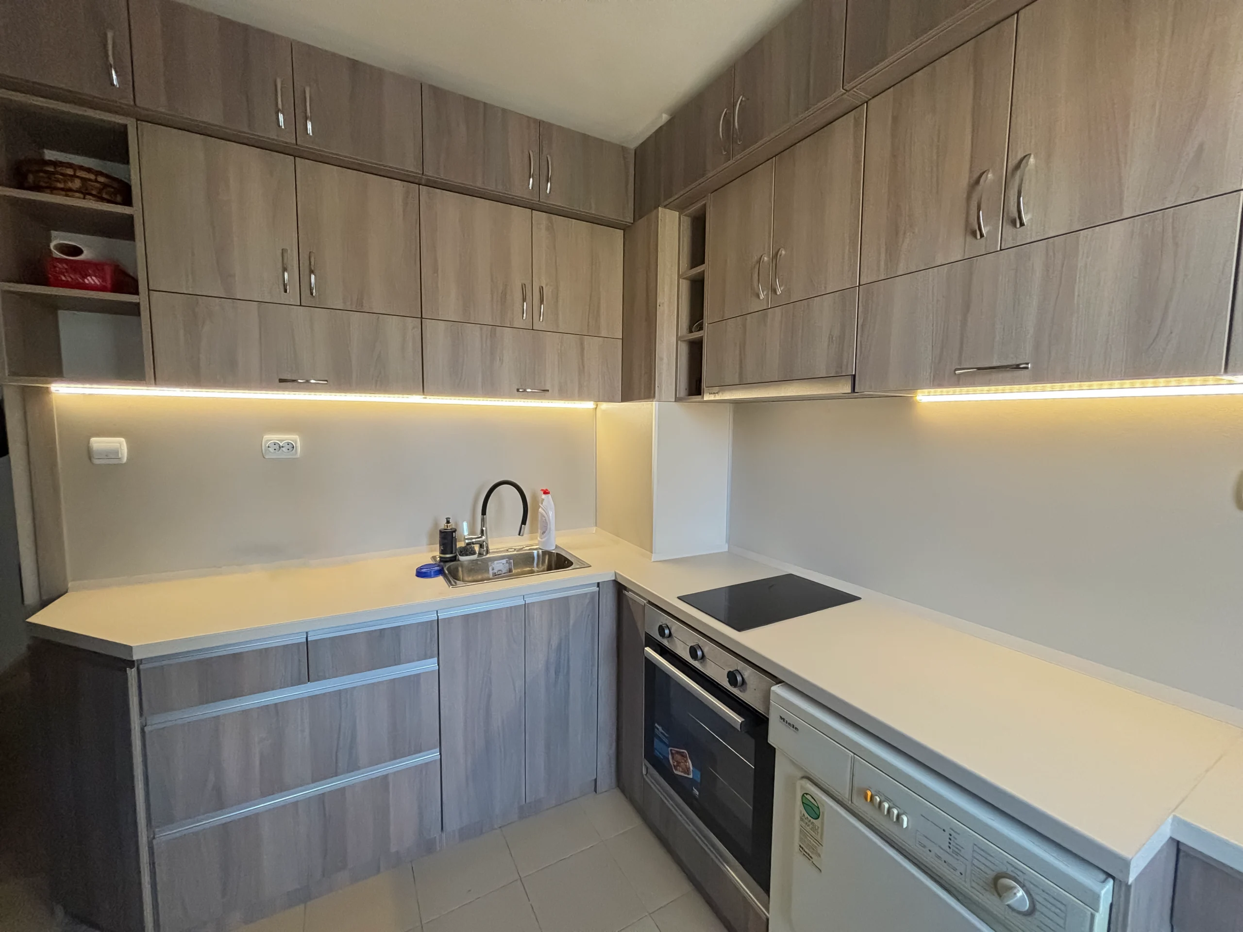 Всяка линия е премерена, всеки детайл – осмислен. Въпреки компактните размери, всичко има своето място и логика. Зад балконската врата се оформи идеално кътче за микровълнова, кафе машина или друг малък уред – без да се губи нито сантиметър пространство. Тази кухня е пример как внимателният дизайн може да превърне всекидневната функционалност в усещане за комфорт, ред и завършеност.